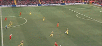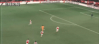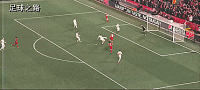但更重要的是他如何跑位,下面请看他是如何不断地观察防守队员,从他们盲侧跑位的,下面他紧贴着越位线,当我们仔细观察时,我们会发现他的步伐小而快,在不越位的同时也准备好加速的准备。