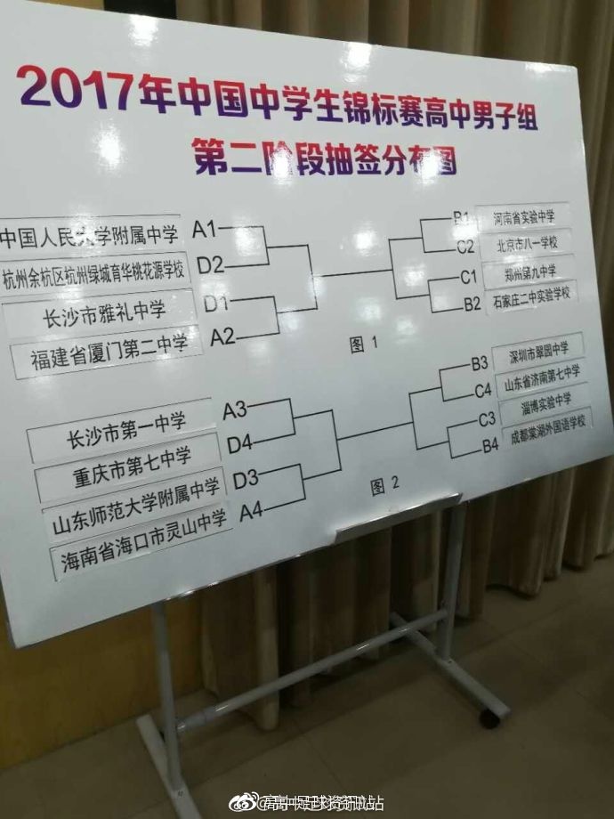 2017年中国中学生足球锦标赛高中男子组抽签结果