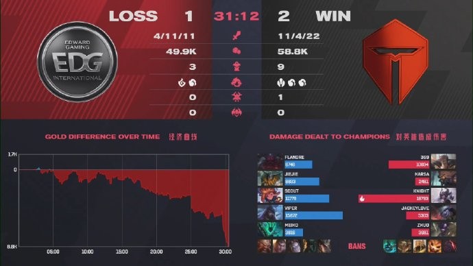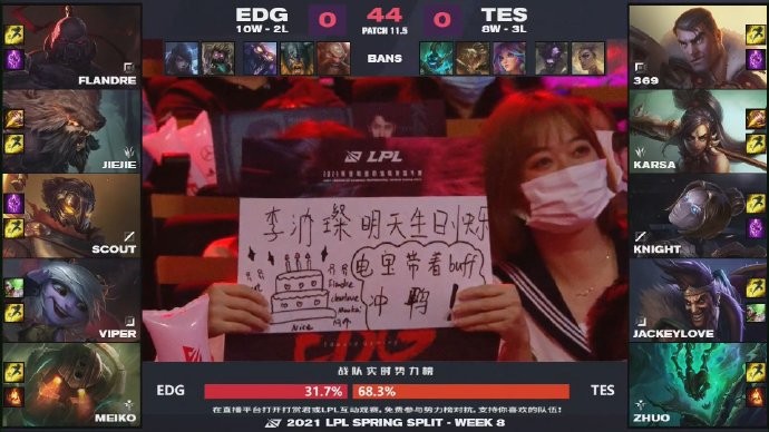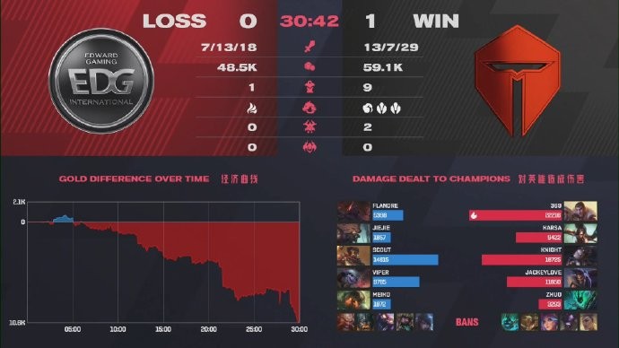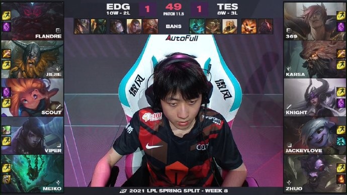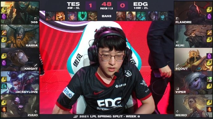 LPL春季赛:TES 2-1力克EDG,knight辛德拉输出拉满取六连胜