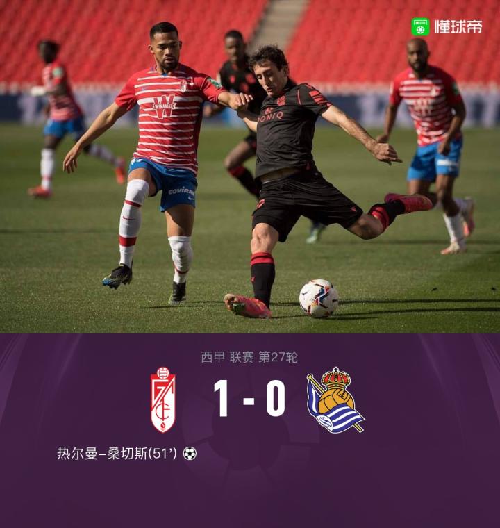 格拉纳达1-0皇家社会,热尔曼-桑切斯建功,大卫-席尔瓦伤退