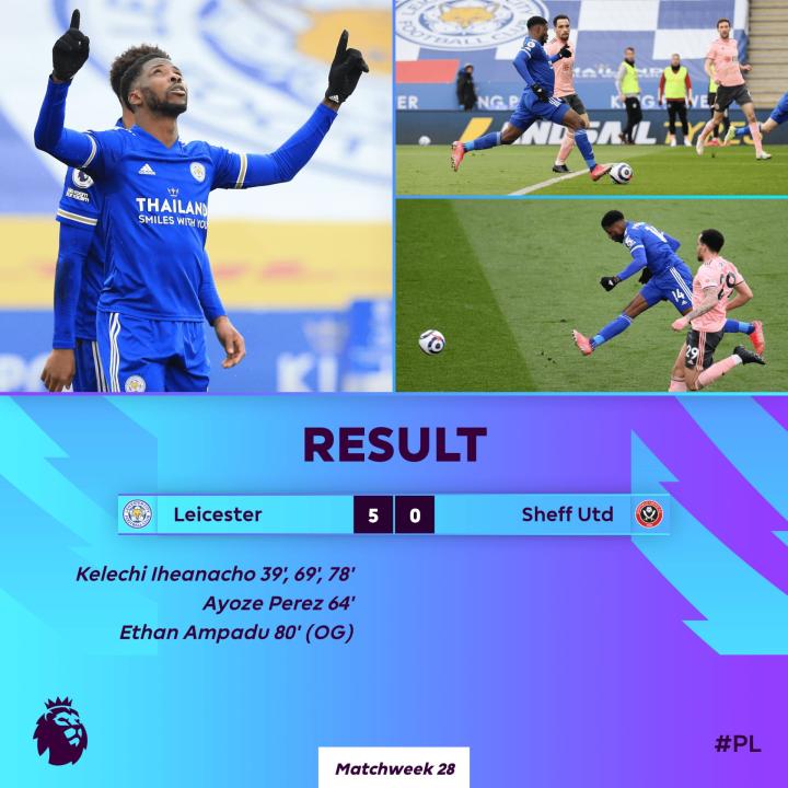 英超第28轮的最大比分,是莱斯特城5-0横扫谢菲联,而这5粒进球里,有3球是尼日利亚前锋伊希纳乔打入的。这是他英超生涯的第一个帽子戏法,提醒人们:“曼城太子”的绰号可不是白叫的!