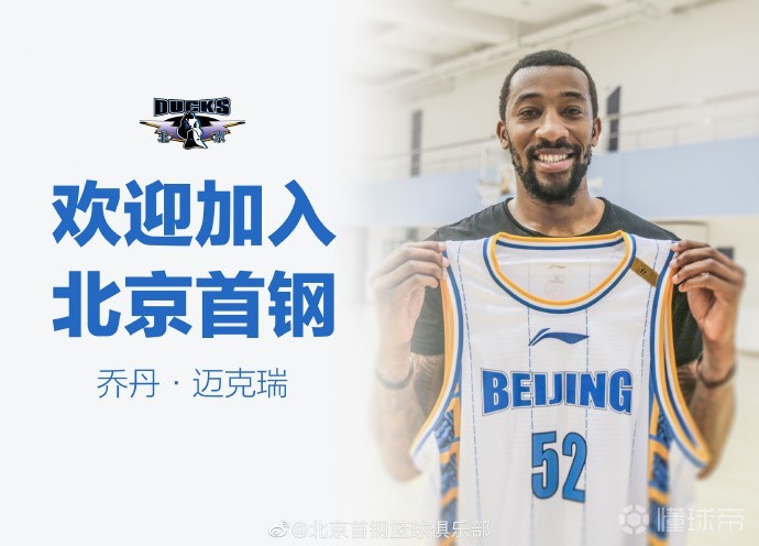 北京首钢官方:美籍球员乔丹-迈克瑞加盟球队,将身披52号