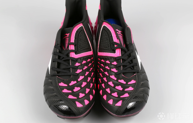 球鞋中部和内侧的红黑色触球区域不仅极具视觉冲击力,而且当中的BIO CONTROL PANEL摩擦条,在球鞋与足球接触的瞬间,与球体吻合,能产生纵向回转的功能。这就是本田圭佑能时常踢出无回旋电梯球的秘诀,也是这款球鞋最大的亮点。