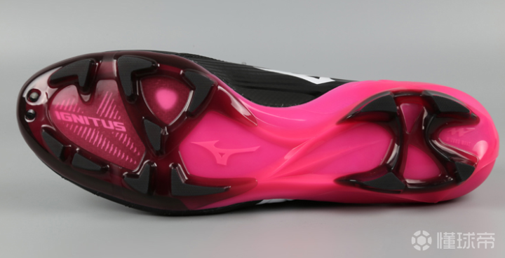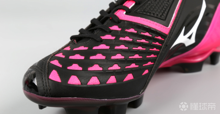 脚跟下方的MIZUZO WAVE可以缓和运动过程中脚受到的冲击力,提高踢球时足部的稳定性。