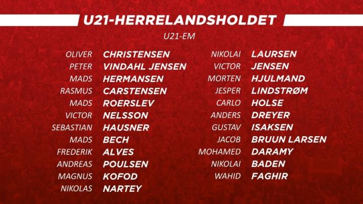 丹麦U21国青队公布了出战欧青赛小组赛的大名单,布鲁恩-拉森入选。