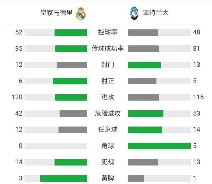 第34分钟,亚特兰大后场失误,莫德里奇断球横敲,本泽马扫射入网。皇马1-0亚特兰大。