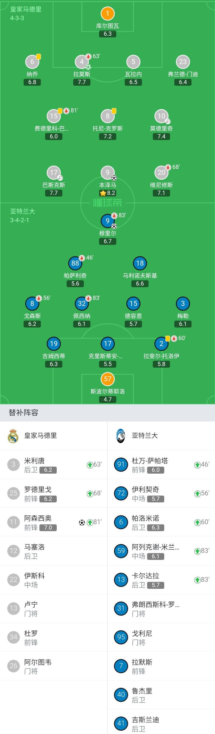 未上场替补:26-阿尔图韦、13-卢宁、12-马塞洛、22-伊斯科、34-杜罗