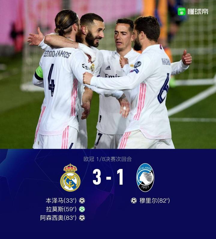 皇马3-1亚特兰大,总比分4-1晋级,本泽马破门,拉莫斯点射
