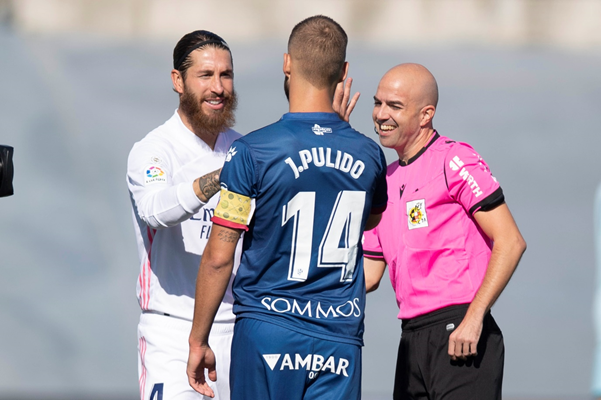 不仅仅是诺坎普之旅的袖标如此独特,韦斯卡还有其他许多富有创造性的例子。去年10月,韦斯卡与卫冕冠军皇家马德里比赛,队长普利多(Jorge Pulido)佩戴了一枚袖标,它以白衣军团传奇阿尔弗雷多·迪·斯蒂法诺的绰号 ——“金箭头”作为设计灵感,以表达对他的致敬。