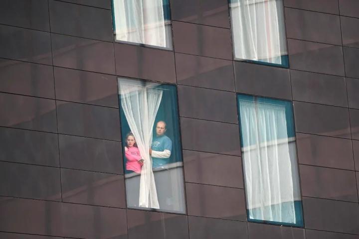 贝德福德郡摄影师Chiara Mac Call为此拍摄了一组隔离日常,街道两边的居民透过窗户跟他打招呼。