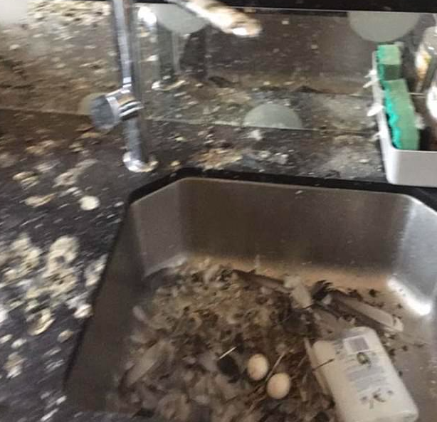 “很抱歉看到这一幕,你的房间已成为鸽子粪便的海洋。水槽里留有几个蛋,你的衣服上还有一窝小鸡嗷嗷待哺。”