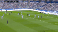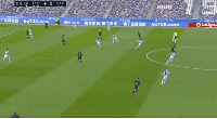 这又是梅西和布斯克茨在右边路配合,迅速将球从后场运到中线。面对皇家社会并不完整的后防线,登贝莱开始加速,而梅西送出直塞。只是这个球有些靠近边路,登贝莱随后的带球也没能拉开速度上的差距,被回退到位的防守球员解围。