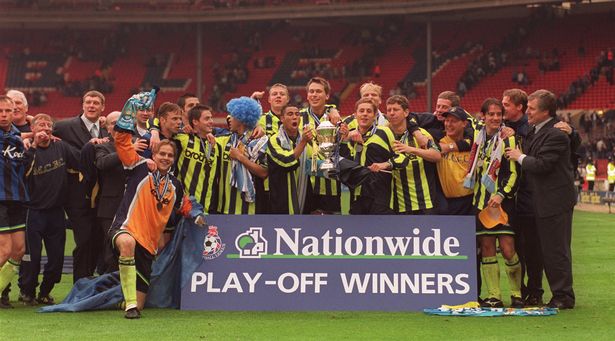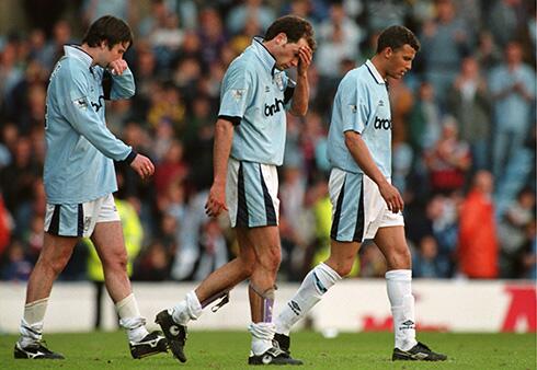 九个月后,我们在1995/96赛季的最后一场比赛中降级。当鲍尔在下一个赛季的第三场比赛后离任时,球迷们一度认为这是曼城重整旗鼓冲击升超的信号。然而,在次级联赛沉沦了两年后,情况变得越来越糟糕——俱乐部队史首次降入英格兰的第三级别联赛③。