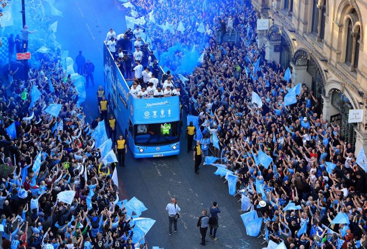 2018年12月,我带着我六岁和九岁的孙子去看了主场对阵伯恩茅斯的比赛,那是他们第一次到现场看比赛。六个月后,在丁斯盖特(Deansgate)⑧沿路举行的冠军游行上,我带着他们俩亲眼见到了四个奖杯,以及成千上万的曼城球迷在道路两旁为球员和管理团队欢呼喝彩的场景。我现在更想知道,如果曼城在接下来的这些赛季没法赢得奖杯,他们会如何面对?我其实更想让他们感受到一些“典型的曼城式失败”,这样的话他们更能体会到现在这样的场景有多么来之不易,而不会被胜利宠坏。