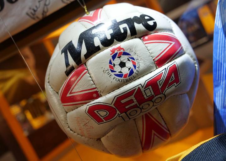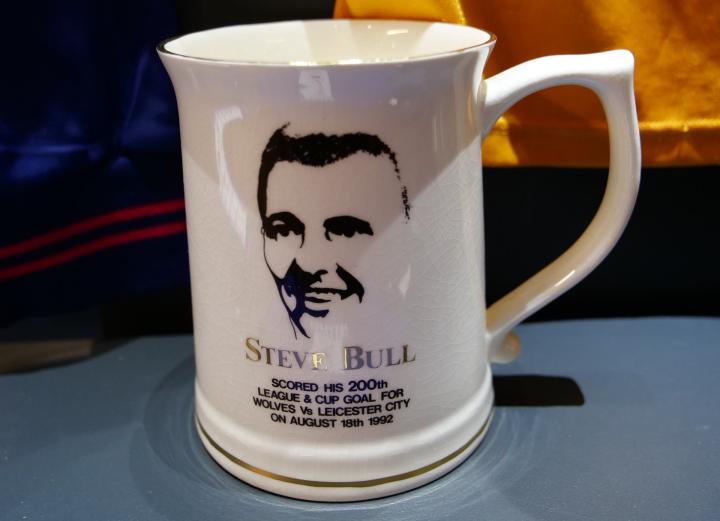 上图的这颗足球是布尔打进狼队200球时的比赛用球。那场比赛发生在1992年8月18日,狼队3-0战胜莱斯特城,布尔打入一球。狼队随后还为布尔的200球里程碑制作了一款公开发售的纪念陶瓷杯。