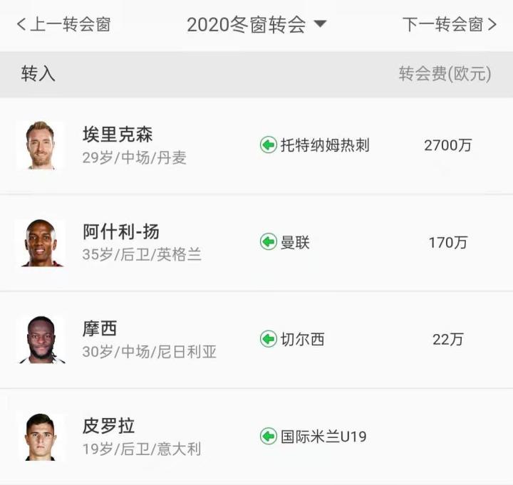 19-20赛季冬窗转会。