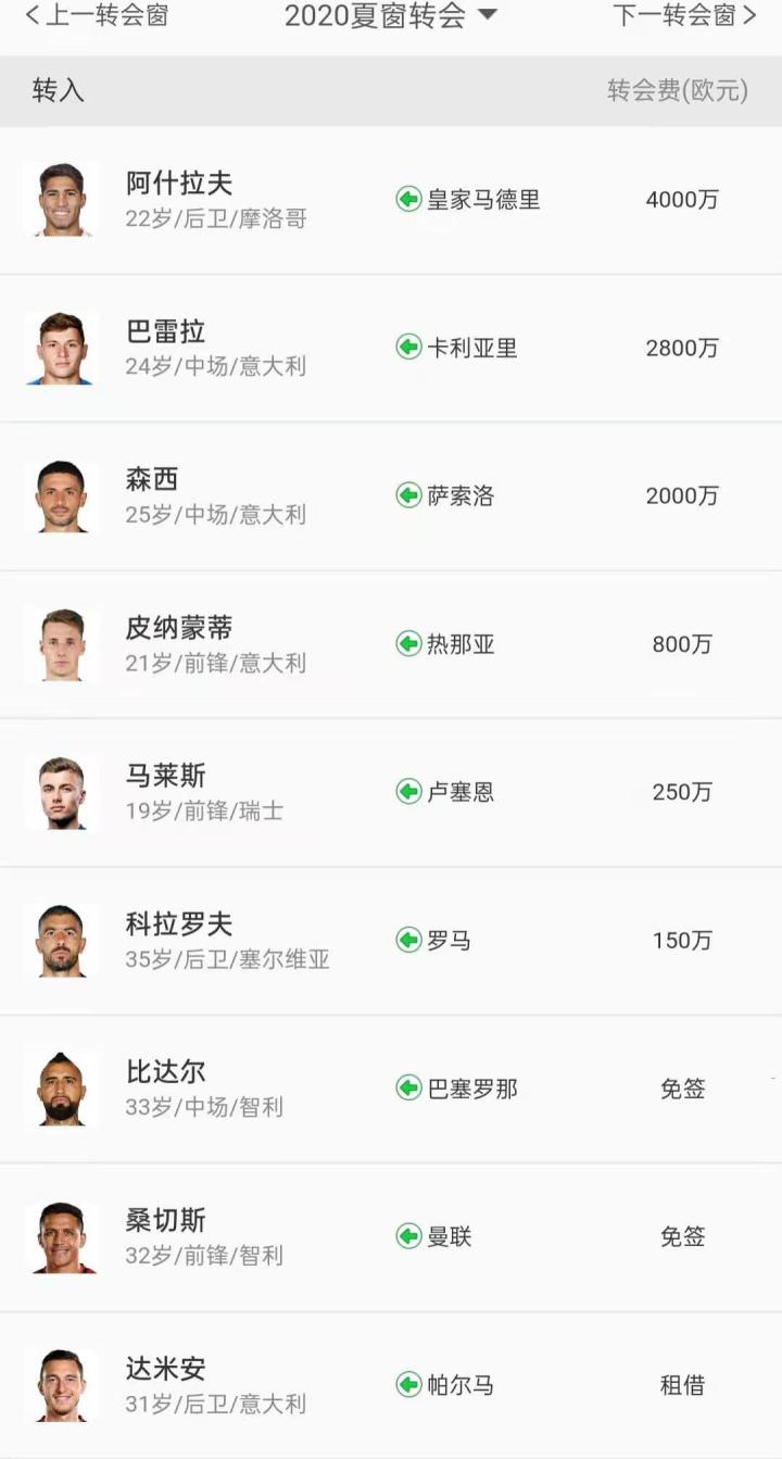 19-20赛季夏窗转会。