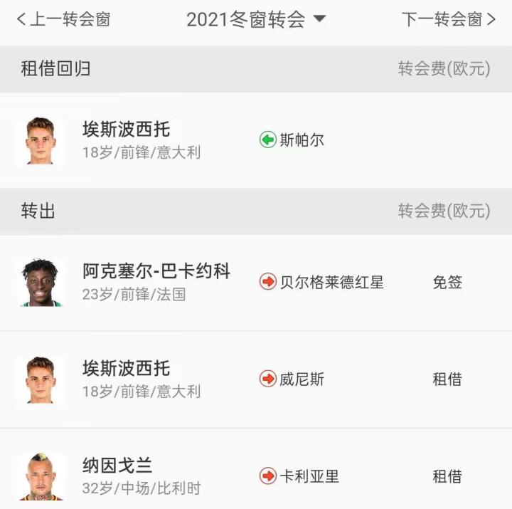 20-21赛季冬窗转会。