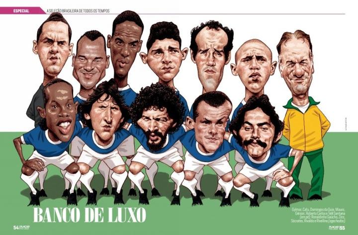 《记分牌》在2月份邀请170名记者、解说员和评论员投票,评选出巴西历史最佳阵容,阵型为433,分为第一阵容、第二阵容和第三阵容,每套阵容还各有一位教练。