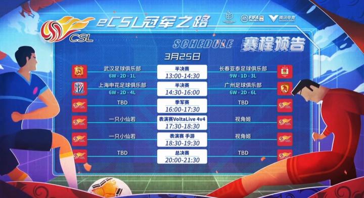 本届eCSL冠军之路是由中国足球协会超级联赛主办,腾讯电竞、EA SPORTS、哔哩哔哩电竞联合主办的FIFA ONLINE 4国内顶级赛事。共有15支中超俱乐部组队参赛,获得三甲的战队有机会争夺6月份通往EA冠军杯(FIFA ONLINE4的官方国际赛事)的门票。