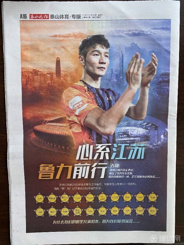【江苏球迷买下《泰山晚报》一个版面,致敬即将加盟山东的吉翔】