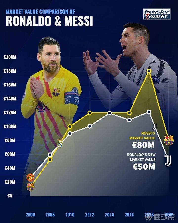 【绝代双骄时代结束?梅罗身价分别下跌至8000万欧和5000万欧】