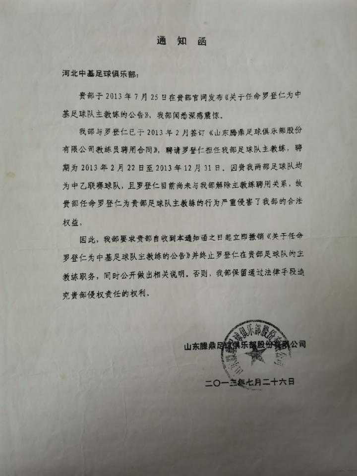 罗指导回家之后,滕鼎总经理一看没有主教练,这不行啊,连忙致电罗指导,要求罗指导立即归队。罗指导看了看时间,想要赶上揭幕战已经来不及,就没有回去。后来,罗指导多次与滕鼎俱乐部联系,滕鼎俱乐部也向罗指导做出了承诺:“今后若是有其他球队再请他当主教练,滕鼎俱乐部这边绝对开绿灯。”然而,这个口头承诺并没有形成书面文件,这也为双方后来的纠纷埋下了伏笔。