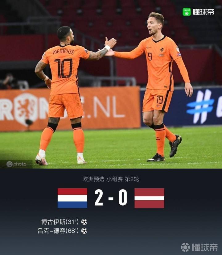 【荷兰2-0拉脱维亚取预选赛首胜,博古伊斯、吕克-德容建功】