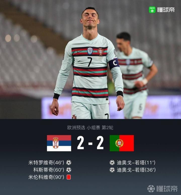 【C罗绝杀遭遇门线冤案!葡萄牙连丢两球2-2塞尔维亚,若塔双响】