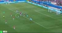第62分钟,葡萄牙第三次扳平比分!刚替补上场的夸雷斯马左路传中,C罗门前头球攻门球进,3-3!