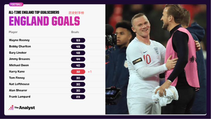 内容来源:译自The Analyst的Will Harry Kane Become England’s Leading Goalscorer?