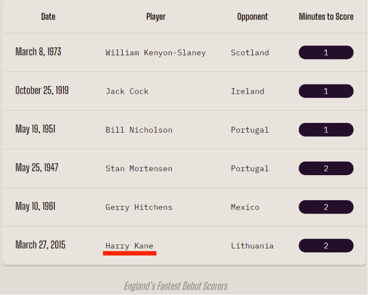很少有球员能比凯恩在国际赛场上取得更好的开局。在2015年3月27日的温布利,英格兰对阵立陶宛的2016年欧洲杯预选赛中,哈里-凯恩在第72分钟替换鲁尼出场。现在回想起来,这次换人的意义真的非同一般。而79秒后,随着闪电进球的到来,凯恩追赶前辈步伐的序幕也就此拉开。