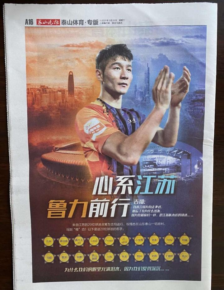 江苏球迷众筹买下泰山晚报、扬子晚报整版面,为吉翔...曼城球迷协会 @懂球帝2021-04-01 22:18江苏球迷众筹买下泰山晚报、扬子晚报整版面,为吉翔、周云送上祝福。点赞[棒棒哒][棒棒哒]展开更多