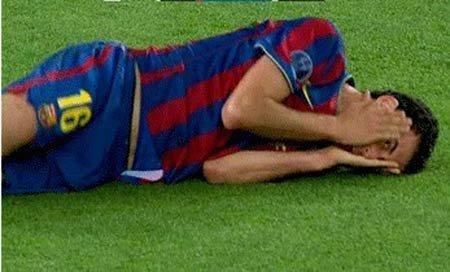 然而,3-1并不是一个保险的比分。巴萨传控的威力天下皆知,再加上一个客场进球,翻盘并不是什么不可能的事。果然,开场之后巴萨就展开了狂攻。令人吃惊的事情发生在第27分钟—莫塔防守时触及布斯克茨面部,布斯克茨顺势倒下,来回翻滚,似乎十分痛苦。主裁判见状,直接出示红牌将莫塔罚下!而布斯克茨那一偷看的表情则彻底出卖了他,从此,西班牙人获得了“(影视)教授”的美名。
