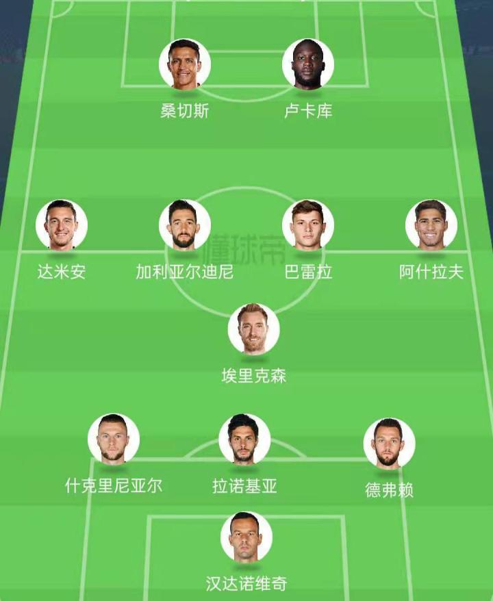 锋线,桑切斯状态,体能都很好,应该会先发,替换劳塔罗。卢卡库的替补何在?2年了,一直没解决。。。