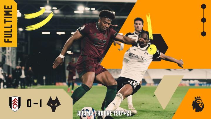 最终狼队凭借最后时刻的进球客场1-0险胜富勒姆,全取三分!