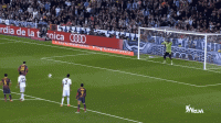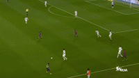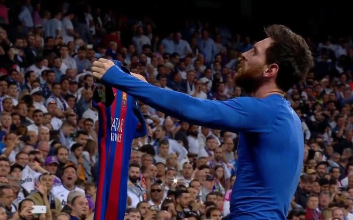 就这样结束吗?不,读秒时刻,梅西挽剑刺穿白甲,一面是皇马球员保龄球般地倒地懊悔,一面是红蓝十号球衣在伯纳乌迎风飘扬!