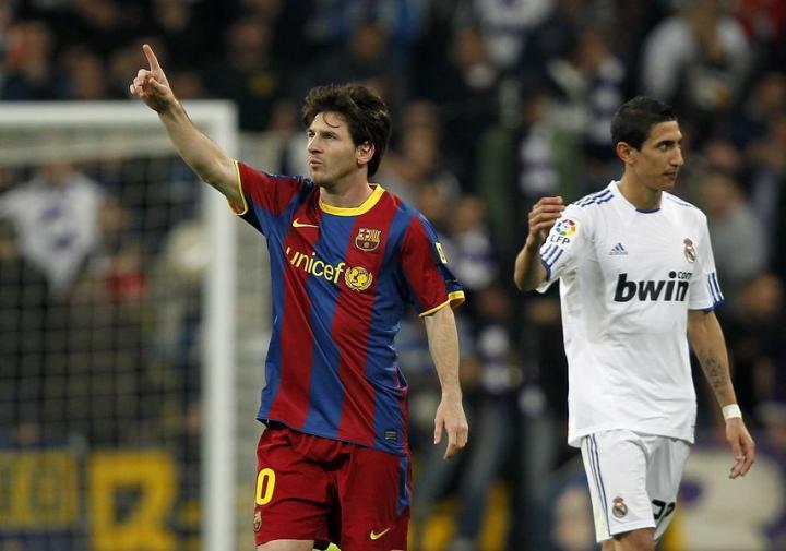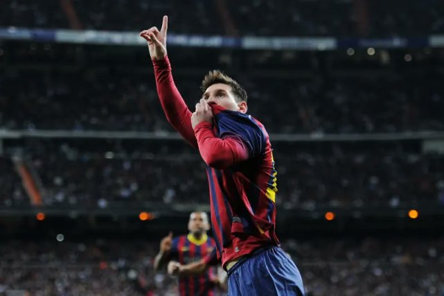 2014年3月23日,伯纳乌球场,巴萨4-3逆转皇马,梅西一传三射,超越传奇迪斯蒂法诺独享国家德比射手王美誉。
