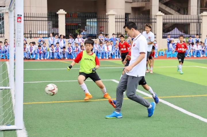 皇岗小学校队队员跃跃欲试,接应张源、戴伟浚在禁区外的回传,用假动作晃过他们之后推射死角。看到孩子们领悟得很快,总教练孙可非常高兴。“没想到这才一会儿,他们就能掌握到一些技巧的精髓,可见他们平时训练是非常努力的。这与校队教练的辛勤付出也有很大关系。”孙可说,“这是我第一次带好几十个人一起训练,这种感觉真的很特别。”