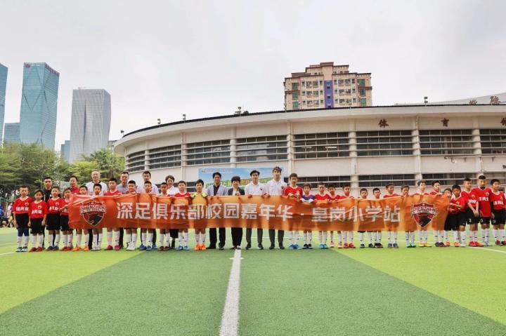 深圳市足球俱乐部深圳市足球俱乐部校园嘉年华皇岗小学站活动,4月9日上午开启。孙可、张源、戴伟浚三位深圳队队员亲身示范,给皇岗小学足球校队上了一堂专业、有趣的公开训练课,之后还跟他们踢了一场欢乐十足的友谊赛。