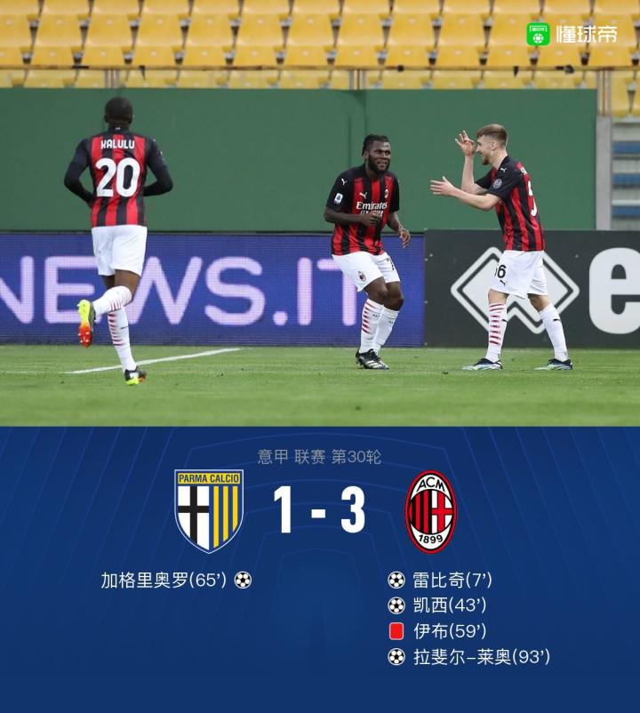 剑南春丨意甲战报:帕尔马1-3米兰,伊布助攻+染红,凯西建功