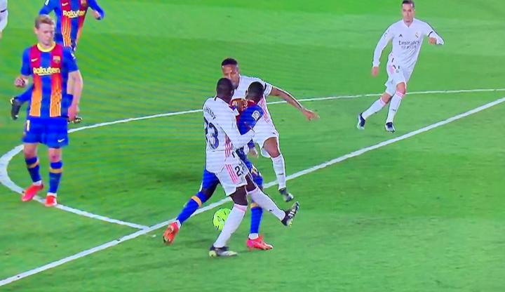 该判点球吗?国家德比登贝莱禁区内倒地,主裁判没有表示ETChalmers @懂球帝2021-04-11 03:53正在进行的西班牙国家德比中,上半场尾声阶段出现一次争议判罚,登贝莱在禁区内倒地,主裁判没有表示,VAR也没有介入。比赛第38分钟,禁区内接球的登贝莱在米利唐和门迪的两人夹防下倒地,巴萨球员向裁判索要点球,但主裁判希尔-曼萨诺没有响哨,而VAR也没有介入。展开更多