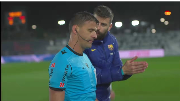 AlanDC01:皮克正在向裁判解释巴萨本来可以赢的,理由如下:1、雨一直下,还很大;2、皮主席自己没上;3、梅西被冻得发抖了都;4、布莱斯维特那个该是点球;5、补时不够;6、场地不好;7、该早点给皇马红牌;8、剩下的我会给你打电话细聊(Piqué explaining the referee they could win. And the reasons are. 1. It was raining too much. 2. He couldn't play 3. Messi was shaking and had to change jersey 4. You had to give a penalty Braithewate 5. You have to give more extra time 6. It was a training ground 7. You didn't have to change your headset 8. You had to give a red early to any Madrid player 9. I'll call you to tell you the other reasons.)