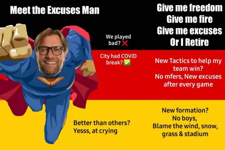 TavaCHoo(曼城球迷):如果巴萨教练是克洛普,他肯定会说,输球是因为下雨(What If Klopp was the manager of Barca, he would say 'Barca lost the match because of Rain)。