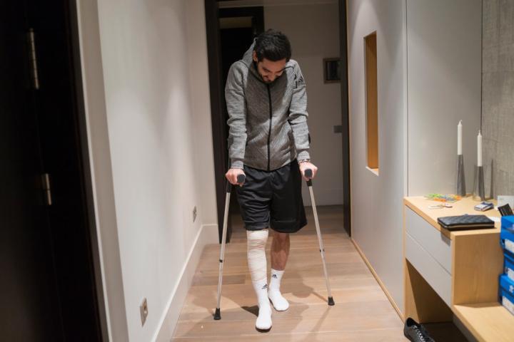 “我意识到,糟了!”京多安说,“我知道我的比赛结束了。”几分钟后,在曼城伊蒂哈德球场的一队更衣室隔壁的治疗室里,在经过几次简单的测试后,萨拉刚刚在球场上所怀疑的事情变成了事实——京多安右膝前十字韧带撕裂。