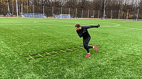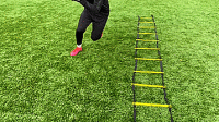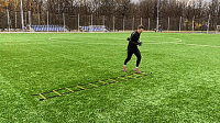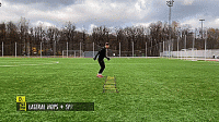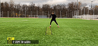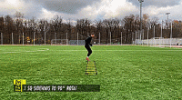 第二个训练是腾空剪刀脚加箭步跳,我们同样从敏捷梯的一端开始。