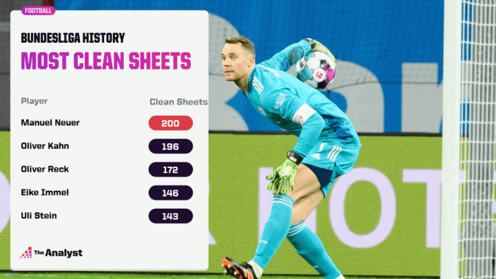 而在接下来4-0战胜前东家沙尔克04的比赛中,诺伊尔获得了他在德国顶级联赛中创历史的第197次零封。