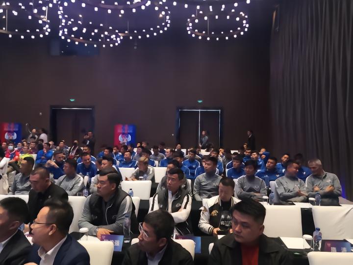 (青岛足球俱乐部主教练吴金贵在台上发言)