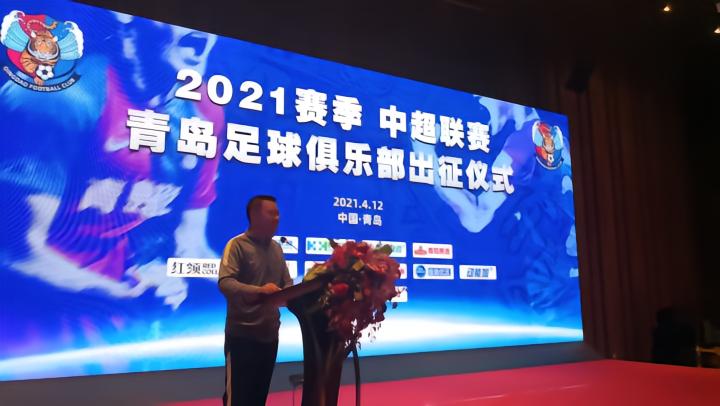 (青岛足球俱乐部总经理孙迪在台上致辞)