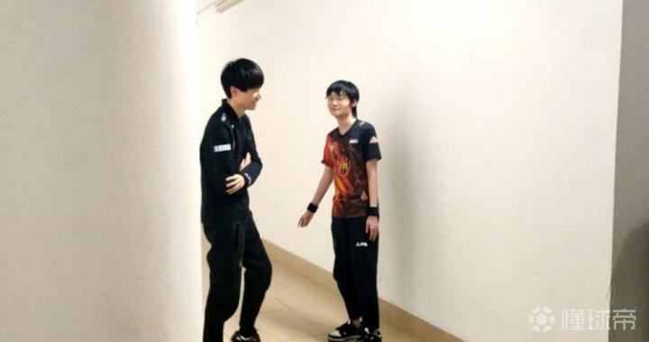 完成直播流的采访之后还有媒体的群访以及专访,去到五楼的采访间前会有一段小小的准备时间,队友Doinb叫了高天亮在一旁无人的角落,两个人细细碎碎的声音被距离切断,有人悄悄记拍下了这一幕,只是谁也听不到他们具体在说什么。